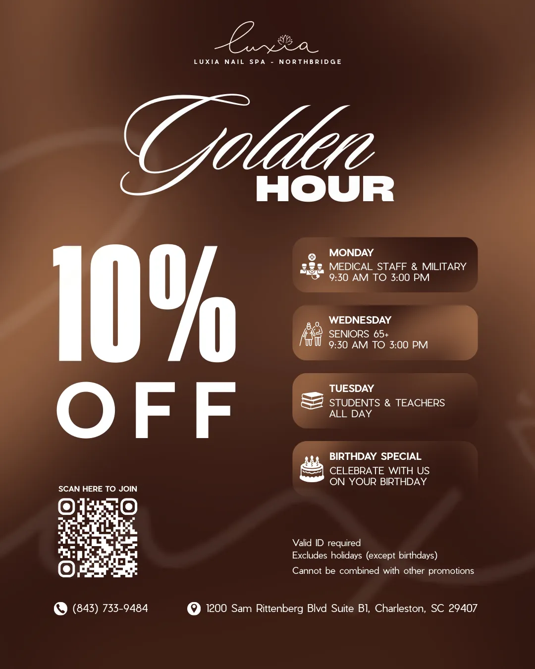 This is the form for you to fill out to get 10% OFF of Golden Hours Specials. After filling out we will redirect you to our online booking page. Please book an appointment from there. We might need to call to confirm. Offer is valid until 2/28/2026.